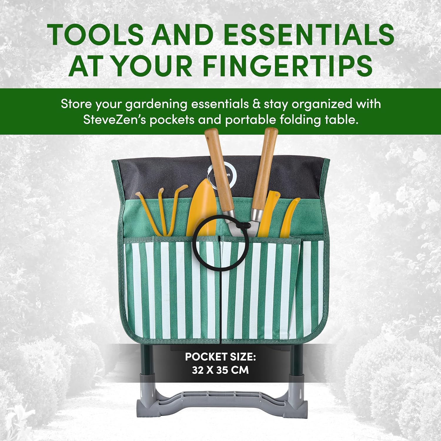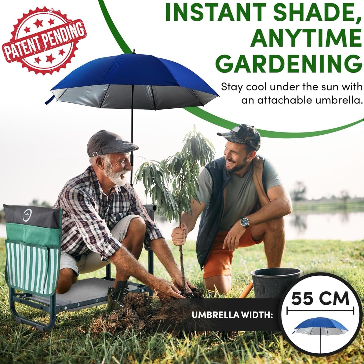 Garden Kneeler Seat Garden Bench Garden Stools Foldable Stool with Shade Umbrella (Patented) Tool Bag Pouch EVA Foam Pad Outdoor Portable Table Potting Mat Kneeler Gardening Gifts for Women MenCreate a new description for this product from the title with 500 characters