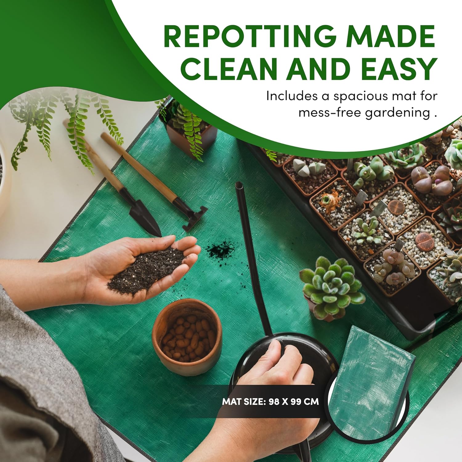 Potting Mat for Planting and Weeding. No need to bend over to gather up your clippings. They will all be on the mat. Pick up the 4 corners and haul away!